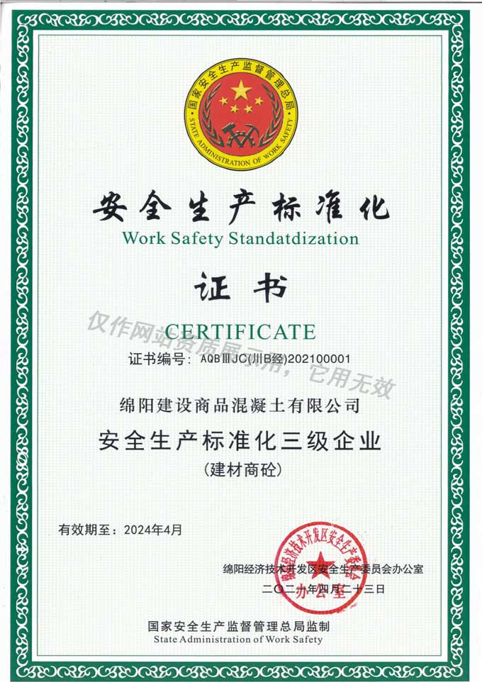安全生產標準化證書